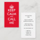 Funny custom Behalt Calm Visitenkartenvorlage. Berufliche Visitenkarte in Rot oder Farbe. Moderne Typografie mit Krone. Behalt ruhig und ruf mich an. Ideal für jede Art von Unternehmen oder Selbstständigen. Geben Sie Ihre Dienstleistungen oder den Handel auf der Rückseite an. Lächeln Sie Ihre Kunden mit einer lustigen Bürokarte.