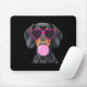 Funny Dachshund Wearing Gles And Blowing Nk Bubble Mousepad