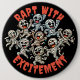 Wenn Sie Hallowe'en als einen der lustigsten Tage des Jahres sehen, dann ist dieser skurrile Knopf mit der sonnigen Beobachtung "Rapt with Excitement" in einem gruseligen Schriftart in Kürbisorange und niedlichen KI-generierten überglücklichen Tanzmues, die ihre große Nacht feiern, perfekt für die lustigste Zeit des Jahres! Design © W.H. Sim. Weitere Informationen unter zazzle.com/word2art