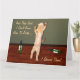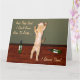 Das sonnige Bild einer orangefarbenen Katze, die tanzt und mit Weinflaschen auf dem Boden feiert, und die lustige Unterschrift, und sie sagten, ich wüsste nicht, wie man Party... Ich zeigte sie auf einer extra großen Grußkarte.