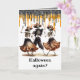 Auf der Vorderseite dieses Halloween-Grußkarten befindet sich ein Trio fröhlicher Tanzskelette, die in ihrem Party gekleidet ist. Oben auf der Karte befinden sich Imitate glitzernde schwarz-orange Tropfen. Der schwarze Text unten sagt "Halloween nochmal?", und das Gefühl wird innen fortgesetzt. Ein weiteres Bild von tanzenden Skeletten ist innen. Der gesamte Text ist leicht an Ihre Bedürfnisse angepasst, sodass Sie ihn so gestalten können, wie Sie wollen. Niedlich!