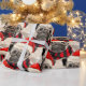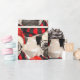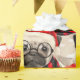 Ein bezaubernd modischer Mops in Brillen, Santa Cap und gestreiftem Winterschal ist gemustert auf diesem lustigen Geschenkpapier für Liebhaber von Haustieren.
