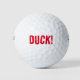 Man könnte meinen, dass es bei all den Vogelnamen für Golfspiele noch eine geben würde, die zu viele Schüsse über Par beschreiben würde, aber nein. Diese lustigen "Duck!"-Golfbälle (wie in get down, nicht quack!) sind eine gute Warnung für andere Golfer, wenn der Spieler einen freien Tag auf dem Fairway hat! Design und Kopie © W.H. Sim. Alle Rechte vorbehalten. Weitere Informationen unter zazzle.com/wordsofwhimsy