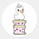 Funny Duck springt aus einem Kuchen Runder Aufkleber