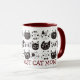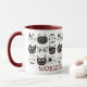 Diese Tasse hat ein Muster niedlicher Cartoon-Gesichter in Schwarz-Weiß. Unten steht der rote Sprichwort "Die beste Katze-Mama der Welt". Perfekt für den Muttertag oder zu jeder Zeit! *Dank an Soul Cliparts World für die Bilder in diesem Design.