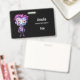 Benennen Sie Abzeichen mit einer niedlichen Abbildung. Frankensteinmonster mit rosa und lila Haar und einem Dapper Mantel und Krawatte.