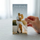 Make your guests smile with this funny “free drinks” bookmark photo save the date card. Designed with a modern minimalist layout, it perfectly balances humor and elegance. Your favorite photo takes center stage with a soft romantic overlay, while the clean typography keeps it timeless and stylish. It’s the perfect way to share your big news with a wink — because who can say no to love and free drinks?