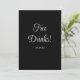 Schwarz-Weiß-Karte mit gratis Drinks auf der Vorderseite und Oh, und By the Way, Wir werden heiraten! auf der Rückseite. Personalisieren Sie mit Namen in Drehbuch und Stadt, Staat und Ihrem besonderen Hochzeitstag, um sicherzustellen, dass die Menschen bereit sind, mit Ihnen zu feiern! Sehen Sie die Koordination der Artikel in unserem Shop, Verzauberte Finch.