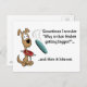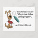 Parfois je me demande "pourquoi cette Frisbee devient-elle plus grande ?"... et puis elle me frappe. Carte postale amusante avec un chien jouant à Frisbee.