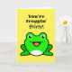 Der lustige Frosch 30.Geburtstagskarte für sie oder ihn mit einem "You're froggin' vorne mit einem lustigen grünen Frosch. Diese gelbe und grüne FroschGeburtstagskarte wäre ideal für Froschliebhaber.