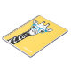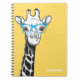 Personalisiertes, lustiges Notizbuch mit einem hellgelben Hintergrund, der in jede beliebige Farbe geändert werden kann, einer sonderbaren Geek-Giraffe mit blauer Brille und deinem Namen.