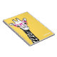 Personalisiertes, lustiges Notizbuch mit einem hellgelben Hintergrund, der in jede beliebige Farbe geändert werden kann, einer sonderbaren Geek-Giraffe mit rosa Brille und deinem Namen.