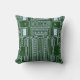 Hübsches Kissen mit zeitgenössischer, grüner Platine und weißem elektronischem Leiterbild. Verziertes, elegantes und funky Hipster Design für den Technologie-Nerd oder Geek, Wissenschaftslehrer oder Ingenieur, modernes Technologie-Liebhaber, künstlerischer Innenarchitekt, künstlerisch beliebter angesagter Trendsetter, Vintager Mod Retro, Modernist, Jugendstil-Deko-Stil oder abstrakt geometrischer Motivliebhaber.