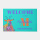 Ein lustiges, farbenfrohes Ziegenzeichen mit moderner Typografie, um mit Ihrem Familiennamen und Zuhause personalisieren zu können. Farbenfrohe Ziegengestaltung in hellen, lebhaften Orange, Gelb, aquamarin, lila und Aqua. Ideal für Ziegenliebhaber und die Lustigkeit des Tierlebens in der Landwirtschaft. Niedliche, lustige Ziegenkünstler-Originalkunstwerke der Künstlerin Catherine Sweetman