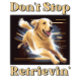 Un drôle de T-shirt d'or avec des paroles parodiques "Don't Stop Retrievin'". Le design montre un chien trop enthousiaste courant à la vitesse de la lumière pour aller chercher un jouet, une balle, ou un os. Cela ferait un grand cadeau pour un amoureux des chiens.
