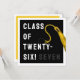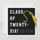 Funny graduation card for Class of '26 graduate featuring black grad cap, gold tassel and creative line. To personalize edit text to add his or her name.