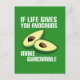 Wenn dir das Leben Avocados gibt, mach Guacamole. Ein lustiges Stück über das alte Sprichwort, um Limonaden aus Zitronen zu machen. Ein mexikanischer Spaß für einen Feinschmecker, der niedliche Witze mag.