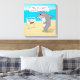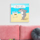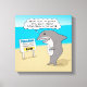 Dieser komisch verpackte Leinwand-Farbdruck zeigt einen Hai, der sich schuldig darüber ist, wieder ins Wasser zu gehen, nachdem er ein öffentliches Strandschild gesehen hat, das den Schwimmern mitteilt, dass die Haifischgefährdung derzeit niedrig ist. © 2015 Chuck Ingwersen