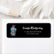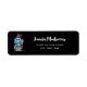 Adressieren Sie Etiketten mit einer Abbildung eines humorvollen Skeletts. Tragen Sie einen Tophut, halten Sie ein Getränk. Er hat ein großes Lächeln im Gesicht. Zu Halloween macht sich niedlich und spukhaft viel Spaß.