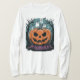Mit diesem lustigen und spöttischen T - Shirt mit Kürbis und Skelettgesicht auf einem Stumpf tauchen Sie ein in den Halloween-Geist. Der Hintergrund zeigt einen Spuk Wald mit schwebenden Geistern und ist somit das perfekte festliche Design für Halloween-Liebhaber. Dieses Design fügt Ihrem Halloween-Kleiderschrank eine lustige, spielerische Drehung hinzu. Egal ob Sie sich anziehen oder lässig bleibe, dieses Shirt ist sicher ein Gesprächsstarter!