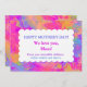 Hat deine Mutter einen Sinn für Spaß? Karo mit dieser niedlichen und farbenfrohen Muttertagskarte. Der Text ist sehr einfach mit Ihren eigenen Namen zu personalisieren - folgen Sie einfach den Anleitungen. Die Farbtöne Rosa und Blau sind hübsch.
