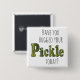 Stellen Sie sich ein Lächeln auf das Gesicht mit diesem lustigen Knopf, der die Worte enthält: "Hast du heute dein Pickle umarmt?" Das Wort Pickle ist mit Bildern von Pickles gefüllt. Ein tolles Geschenk für den Pickle Liebhaber in Ihrem Leben! Weitere lustige Artikel finden Sie unter www.zazzle.com/ybnormal1 Vielen Dank für Ihren Besuch bei Karen Hall