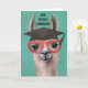 Feiern Sie mit etwas Lachen und Spaß mit diesem High School gebildeten Lama. Eine lustige Aquarellkarte für Ihren Lieblingsgrad. Auf der Karte steht: "High School abgeschlossen - No Probllama! Stilvolle Lama trägt eine Graduationskappe und eine rote Augenbrille... ein kluges Lama.