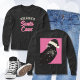 Funny Weihnachten lang Ärmeln Shirt für Mädchen in Rosa, Weiß und Schwarz sagt "Ich glaube noch an Santa Caws" auf der Vorderseite. Auf der Rückseite befindet sich eine im Retrodruck gehaltene Krähe, die eine Weihnachtsmannmütze auf einem bedrückten rosa Hintergrund trägt. Ich habe den Text vollständig anpassbar auf diesem Shirt verlassen, wenn Sie ein anderes Sprichwort bevorzugen, aber Sie können es auch verlassen, wie es ist. :) Frohe Weihnachten! Foto und Design von Amanda Renee, CtrlZ Digital Designs 2025