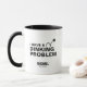 Funny pickleball Akzent Kaffee Tasse mit schwarzem Text: Ich habe ein Problem mit dem Essen. Personalisieren Sie es mit Ihrem eigenen Namenstext und Jahr. Unisex Design für Männer und Frauen, die Pickleball Liebe.