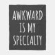 Diese lustige und relatible Fleecedecke mit kühnen, spielerischen Typografien auf einem schwarzen Hintergrund ist das ideale Geschenk für Introvertierte, Spaß Liebhaber oder alle, die ihre sozial unangenehme Seite voll und ganz annehmen. Genießen Sie den Komfort, während Sie alle wissen, dass Sie sich auf unangenehme Momente spezialisiert haben!