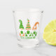 Personalisiertes, sonniges Glas mit drei niedlichen irischen Gnomen, die in Orange, Grün und Kleeblättern verkleidet sind. Fügen Sie Ihren Namen in grüner keltischer Typografie hinzu.