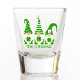 Personalisiertes, sonniges Glas mit drei niedlichen irischen Gnomen, die in Grün und Kleeblättern verkleidet sind. Fügen Sie Ihren Namen in grüner keltischer Typografie hinzu.