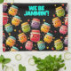Fügen Sie der Küche eine Touch Peitsche hinzu (und würdigen Sie das Zuhause-Konservenerlebnis) mit dieser Schürze, die ein sich wiederholendes AI-Muster aus lustigen, fröhlichen Springgläsern mit bunten und jubilanten Marmeladen aufweist, begleitet von dem pun-gefüllten Original-Meme "We Be Jammin!" oder personalisieren Sie Ihre Wunschmarke mit lustigen/Essensthemen. Design © W.H. Sim. Weitere Informationen unter zazzle.com/word2art