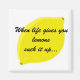 Ein lustiges humorvolles Sprichwort auf einer großen saftigen Zitrone. Wenn das Leben dir Zitronen gibt, sind zum Kotzen es auf!