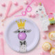 Funny Llama Illustration bläst eine rosa Blase Pappteller