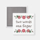 Funny Girly Middle Finger Zitat Kühlschrank Magnet. Zwei Worte ein Finger. Text kann auf Wunsch angepasst werden. Es ist eine höfliche, aber nüchterne subversive Art, jemandem zu sagen, er solle abhauen und weggehen. Niedliche und hübsche Volkskunst Blumengarten mit sarkastischem Morgen motivierend Spaß Zitat in der Mitte. Das Design wurde durch Vintage Stickerei, subversiven Kreuzstich und einfachen Tätowierkunststil inspiriert. Hübsche hängende Blume und unangemessenes Sarkasmus-Spaß-Design machen ihr ein lustiges Geschenk - geschäftige Mutter, Ehefrau, Freundin, Großmutter, Brautjungfrau, Tante - für den Valentinstag, Geburtstag, Jahrestag, Weihnachten, Muttertag, etc. Feminismus Spaß / feministisch Zitat Design für starke selbstbewusste ermächtigte Frau nicht Angst, sich offen auszudrücken.