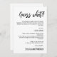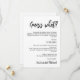 Die Announcement Card der Elegance Collection "A Case of the Hiccups" ist eine charmante und raffinierte Art, die unerwarteten Verzögerungen bei Ihren Hochzeitsplänen zu teilen. Diese Single-Side-Karte zeichnet sich durch klare Linien und moderne Ästhetik aus und bietet eine elegante Plattform, um Ihren lieben Gästen wichtige Neuigkeiten zu vermitteln. Die humorvolle Überschrift "Unser Hochzeitstag hat einen Fall der Schluckauf gefangen!" Set einen spielerischen Ton, der sofort Aufmerksamkeit erregt. Die anpassbare Botschaft geht weiter mit: "Offensichtlich brauchte es etwas mehr Zeit, um sich auf das Rampenlicht vorzubereiten. Wir versichern Ihnen, es sind keine kalten Füße, es brauchte nur einen Schuhputz." Unter der Nachricht wird das neue Hochzeitstag mit der gleichen Eleganz präsentiert, sodass Ihre Gäste mit Stil informiert werden. Die Ankündigung wird mit einer leichtgewichtigen Zusicherung abgeschlossen, dass ihre Geduld geschätzt wird und die Verzögerung bedeutet mehr perfekten Tanz Bewegungen. Der Abschluss bringt Dankbarkeit zum Ausdruck für die Teilnahme an der erweiterten Premiere, unterschrieben mit "Liebe und Lachen" und den Namen des Paares darunter. Die "A Case of the Hiccups" Announcement Card aus der Elegance Collection sorgt dafür, dass selbst in unerwarteten Momenten Ihre Updates mit Spaß und derselben Gnade, die Ihre Liebe bestimmt, weitergeleitet werden.