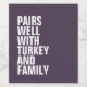 Woll, zu wissen, was dieser Wein gut mit? Türkei und Familie. Mit der Familie geht nichts besser als mit Wein. Dieses lustige Weinetikett, das individuell nach Ihren Wünschen gestaltet werden kann (z.B. "gute Paare mit Schwiegereltern" oder "gute Paare mit lumpy gebackenen Kartoffeln"), passt zu der modernen Erntedank-Einladungssuite von Lea Delaveris Design. Die lila Hintergrundfarbe kann durch Klicken auf "Anpassen" geändert werden.
