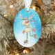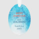 Die Vorderseite dieses Ornaments hat ein Aquarellbild eines lustigen Eis-Skaten-Elchs mit Augengläsern, seinem Winterpulli, Schal und Fäusten. Das Bild wird auf einem hübschen, abstrakten, blauen Hintergrund mit zwei Sternen platziert. Die Rückseite des Ornaments hat den gleichen blau-weißen Hintergrund mit mehreren Textfeldern, die Sie anpassen können. **Design-Guthaben an EphrazyDesign.
