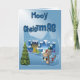 Carte de Noël FunnY, Cette vache en train de voyager dans un village enneigé - Mooy Christmas Funny Cow Christmas Card
