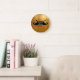Funny Mustache auf Shiny Holz Textur Hintergrund Runde Wanduhr