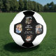 Funny Mustache Happy Vatertag 4 Foto Fußball Ball. Niedlicher personalisierter Foto Fußball mit goldenem Schnurrbart und Happy Vatertag. Fügen Sie Ihre Fotos hinzu. Ein süßes und lustiges Foto Sportgeschenk und Sake für sportlichen Papa zum Vatertag.