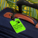 Hallo? Ich sitze hier! Lustiges Gepäckanhänger. Dieses helle, neongrüne Gepäckanhänger wird Ihnen sicherlich helfen, Ihr Gepäck zu finden. Fügen Sie Ihre Kontaktinformationen auf der Rückseite des Tags hinzu.