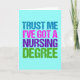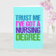 Vertrau mir, ich habe einen Pflegeabschluss got. Ein niedliches und lustiges Abschluss-Geschenk für eine RN oder LPN oder absolviert, um eine berufliche Krankenschwester zu werden. Hübscher aquamariner, rosa, lila und grüner Schriftart für ein cooles modernes Aussehen.