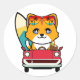 Funny Orange Cat fährt zum Strand Runder Aufkleber