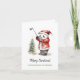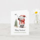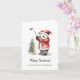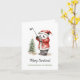 Funny Panda Golfspiel Weihnachts Grußkarte. Wasserfarbe zeichnend von einem niedlichen weißen Panda Bär in Santa coat spielen Golf. Personalisierter Text.