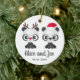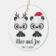 Christmas ornament featuring two funny pandas wearing up Santa hat and Rudolph red nose reindeer. Personalised with your names and foto (on backside).