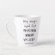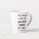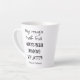 Funny und sonderbare Tasse mit dem Text "Meine Tasse ist halb voll. Wer hat meinen Latte getrunken", zitierte paranoide Optimist.