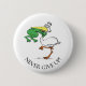Ein lustiger Knopf mit einer positiven Note. Gib nie auf, dass ein Storch einen Frosch schluckt, der seine Hände um den Storchenhals hat. Gutes Geschenk und Inspiration für Freunde und Familie.