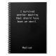 Funny Personalisiert I Survived Office Meeting Notebook enthält den Text "Ich habe ein anderes Treffen überlebt, das hätte sein sollen und E-Mail" mit Ihrem personalisierten Namen unten. Personalisieren Sie den Text durch Bearbeiten in den bereitgestellten Textfeldern. Entwickelt für Sie von ©Evco Studio www.zazzle.com/store/evcostudio